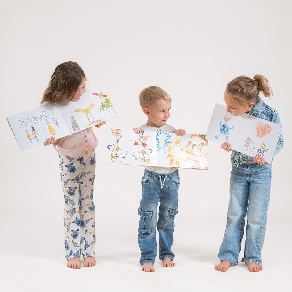 Jasné! Nemusíte mať pre každé dieťa samostatnú knihu, ak nechcete. V knihe im môžeme venovať každému vlastnú kapitolu, alebo ich diela premiešať tak, ako vznikali v čase. Je to krásny spôsob, ako mať súrodenecké detstvo v jednom spoločnom príbehu.